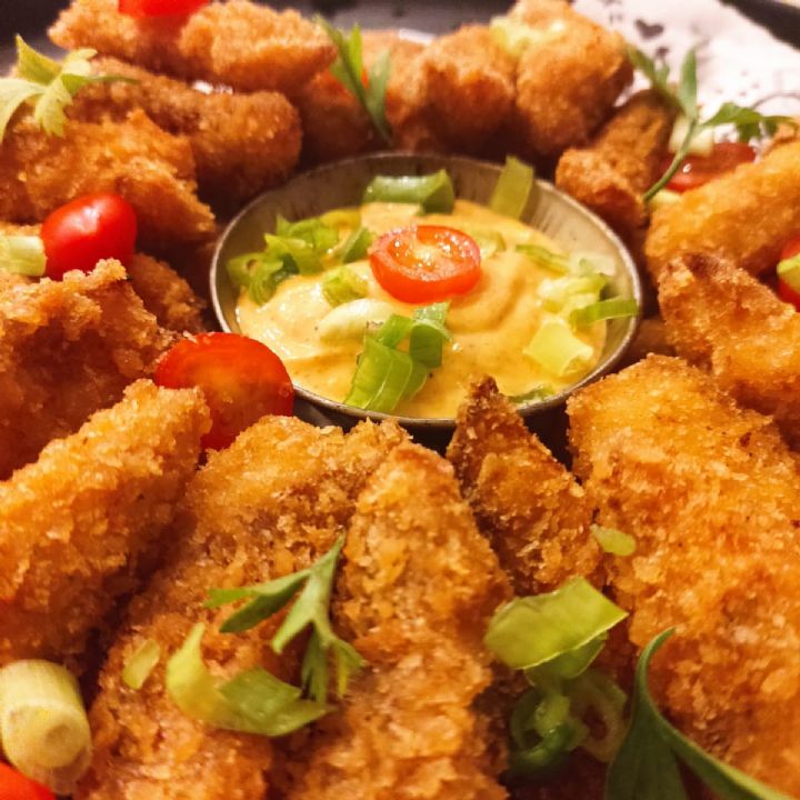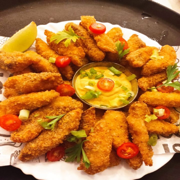 TILPIA CROCANTE Tiras de fil de Tilpia empanadas no panko com molho da casa