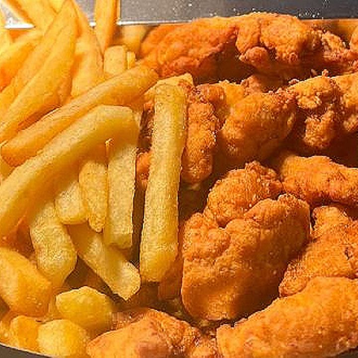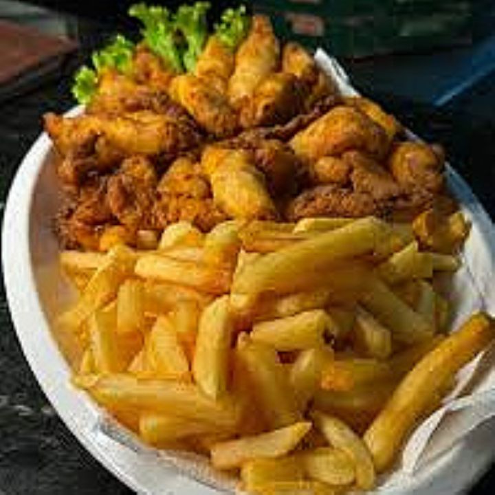 TILPIA CROCANTE COM FRITAS Tiras de fil de Tilpia empanadas no panko com molho da casa e batata frita