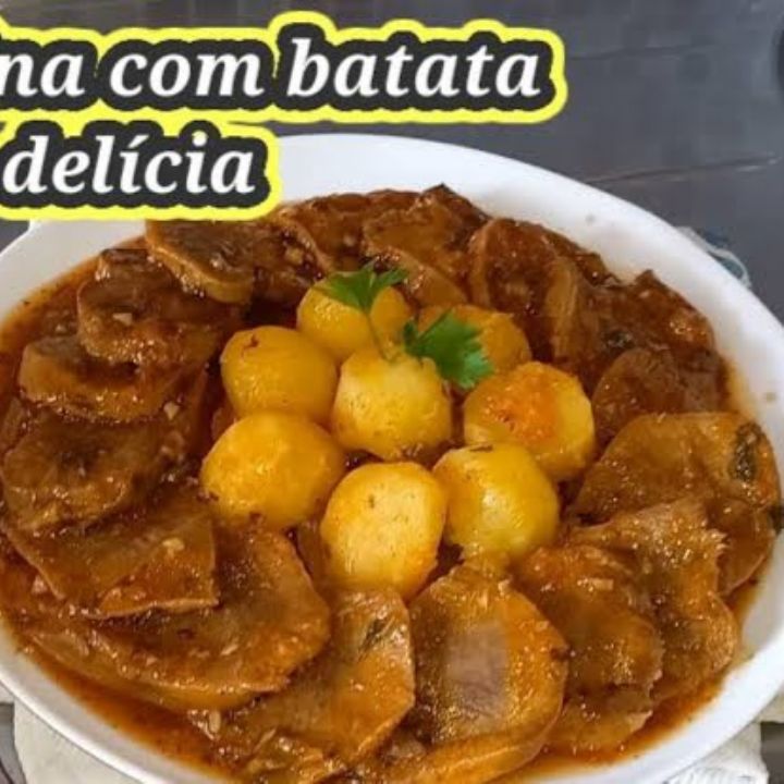 LNGUA DO RESENHA Lngua de bovina, suculenta e saborosa, acompanhada de batata cozida e farofa