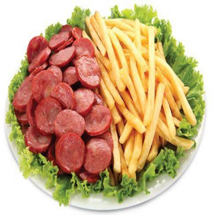 CALABRESA COM FRITAS Calabresa acebolada com fritas e farofa