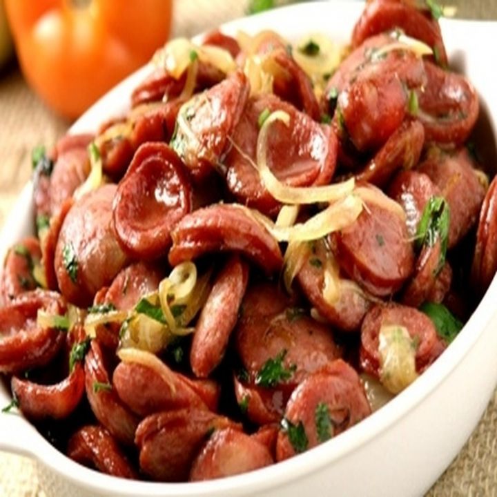 CALABRESA ACEBOLADA Calabresa acebolada com farora